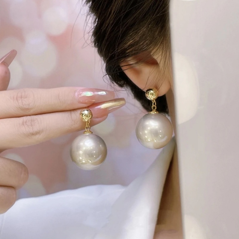 S925銀針大マントー灰色真珠ピアス女性震え音同一パン半円ハイライトビーズ新イヤリング