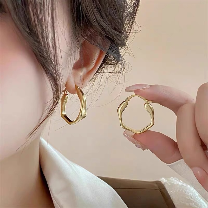 フランス風のシンプルな香港風の不規則な耳のボタンの復古的な金色の耳の輪の個性の幾何学的な形の耳飾りの気質の百合のイヤリング