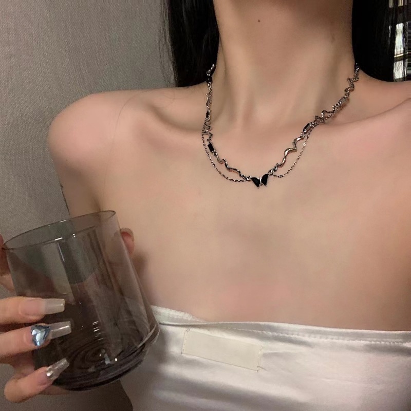 新型の波の紋様の暗黒のギャルの二重の黒色の蝶のネックレスの女性の鎖の鎖の軽い豪華な大衆は首の鎖の潮を飾ります。