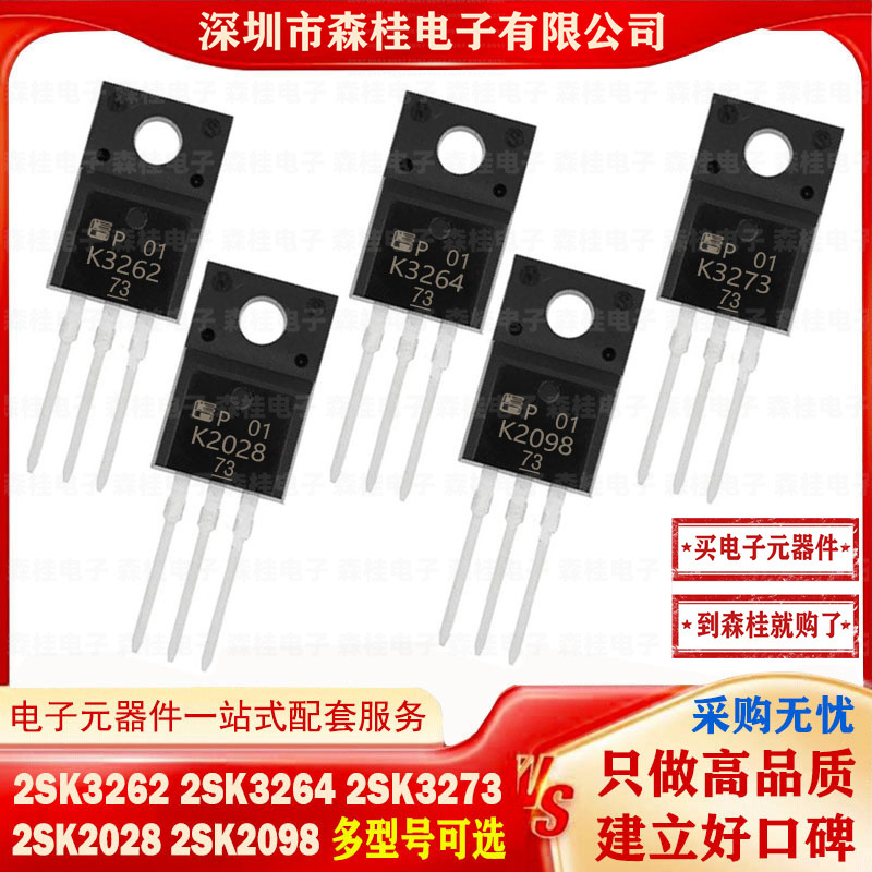 新しい2SK3262 2SK3264 2SK3273 2SK2028 2SK2098 TO220F mosチューブ