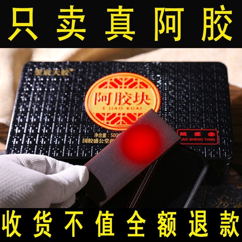 山東の規格品のロバの皮のゴムの塊の500gの鉄の箱の中で本物のロバの皮のゴムのもとの切れの阿嬌阿膠餅の原材料