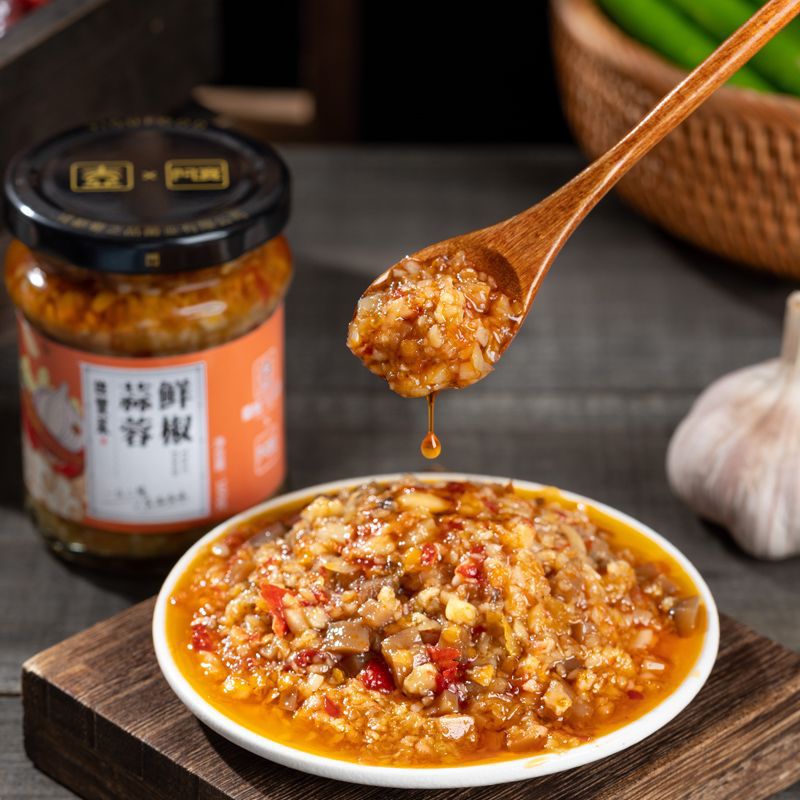 スパイシーレンジキノコとアガリクス ボルビサスのボトル詰めご飯、激辛ビビンバ麺ソース、学生向け前菜