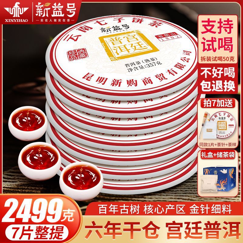 2018 孟海ブラウンマウンテン古代木茶宮殿素材プーアル茶熟茶雲南七子餅茶 357g