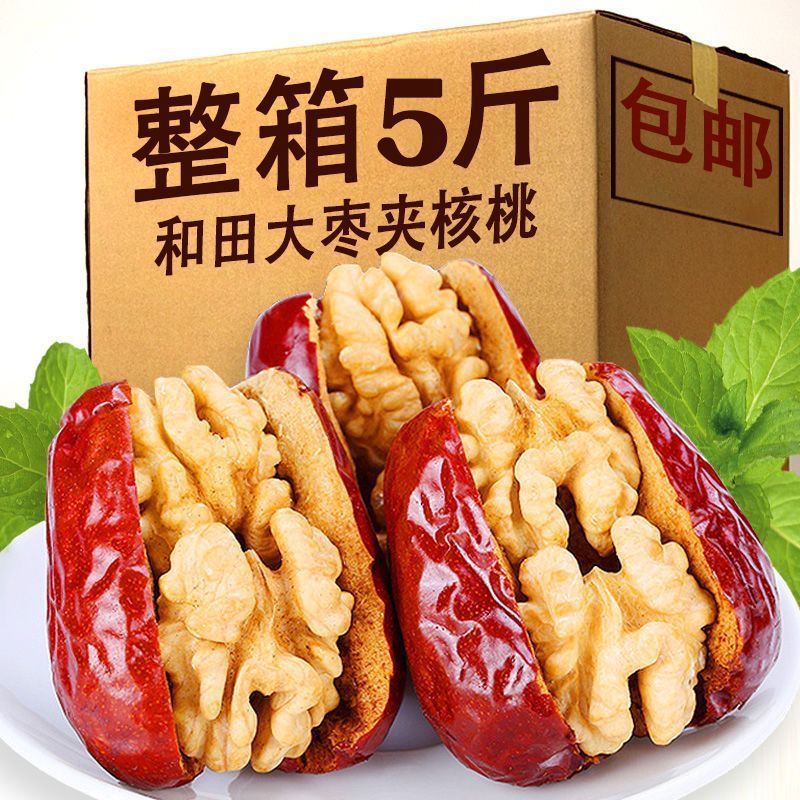 新入荷、大きな赤いナツメヤシとクルミの種、独立した小さな包装のギフトボックス、新鮮なスナック、ドライフルーツ、新疆の特産品の箱ごと