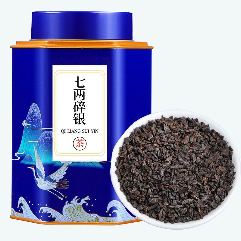 金沙砕銀プーアル茶 もち米の香り プーアル熟茶 小粒茶化石缶 350g
