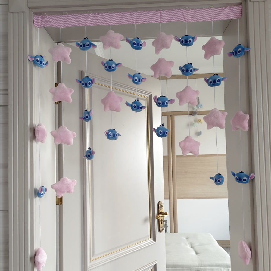 スティッチのドアに愛のカーテンを掛けて、かわいい家庭用寝室に穴を開けないマジックテープでカーテンを貼り付けます。