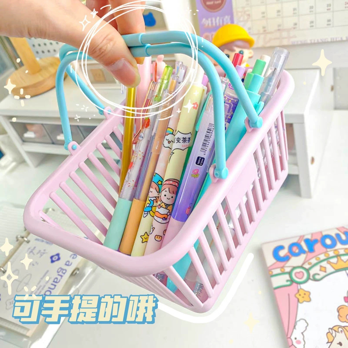 かわいいマカロン色の手提げ収納バスケットピンク少女心シール文房具雑物アクセサリーデスクトップ収納バスケット