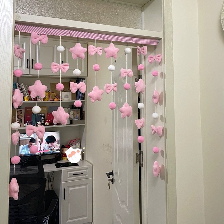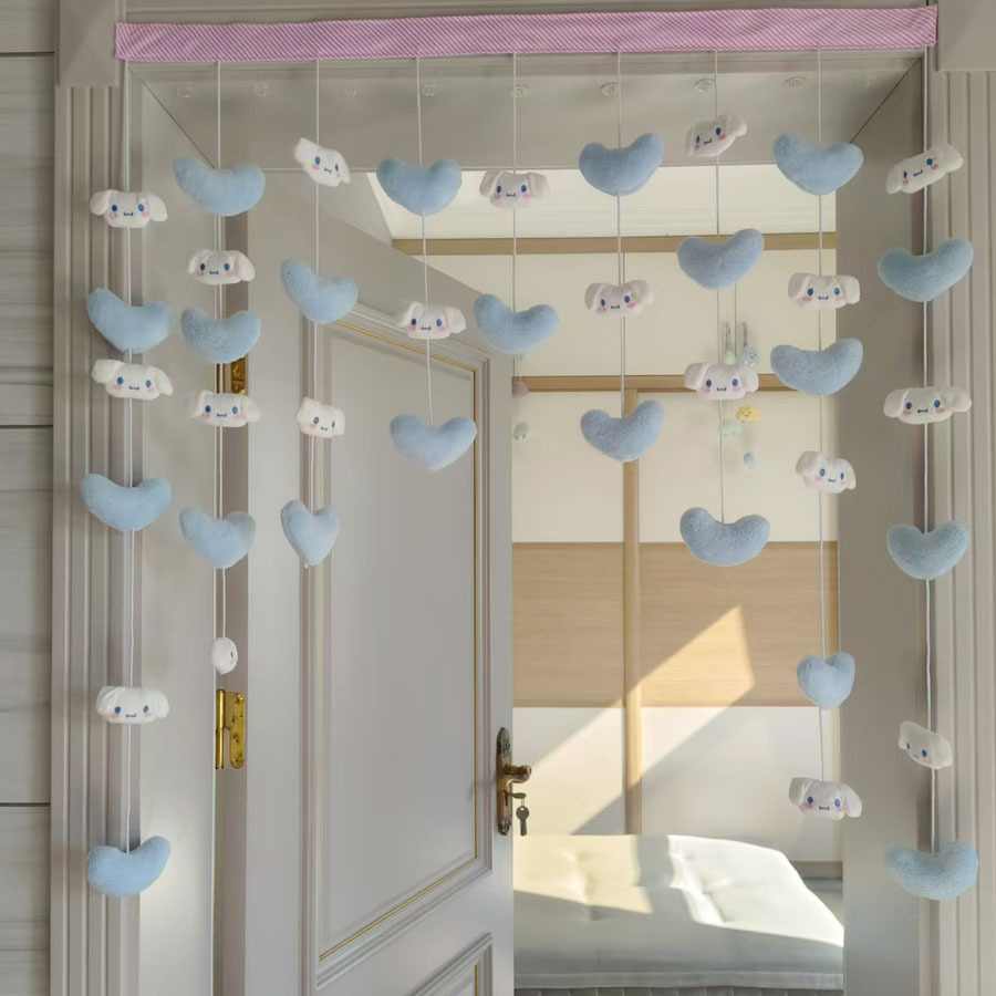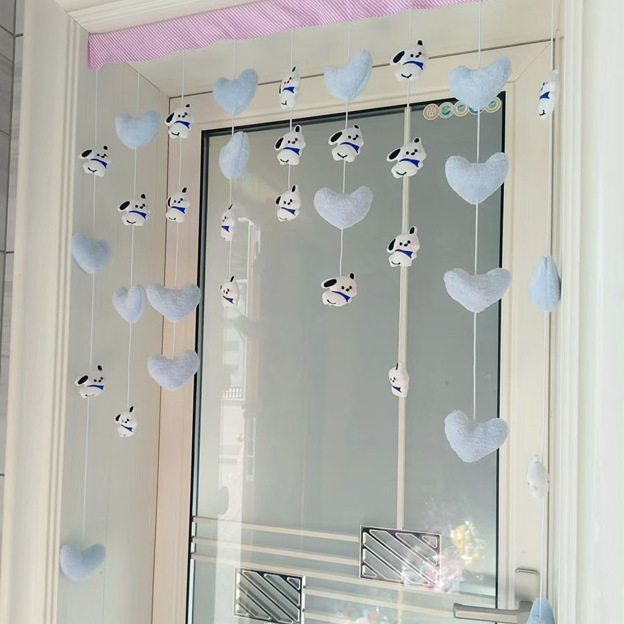 かわいい漫画の恋人の犬のカーテンのパチャ犬の青い星の少女の心の雰囲気感のかわいい玄寝室のドアの装飾カーテン