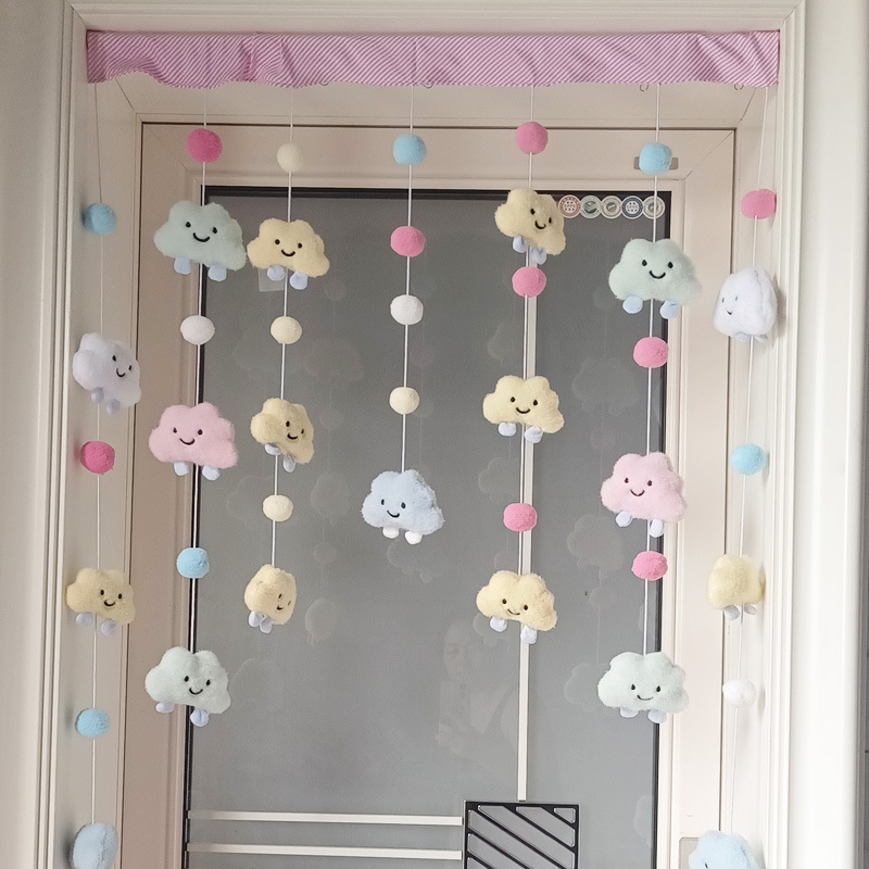 笑顔の家族のカーテンが可愛い雲のカーテンが子供の装飾カーテンです。