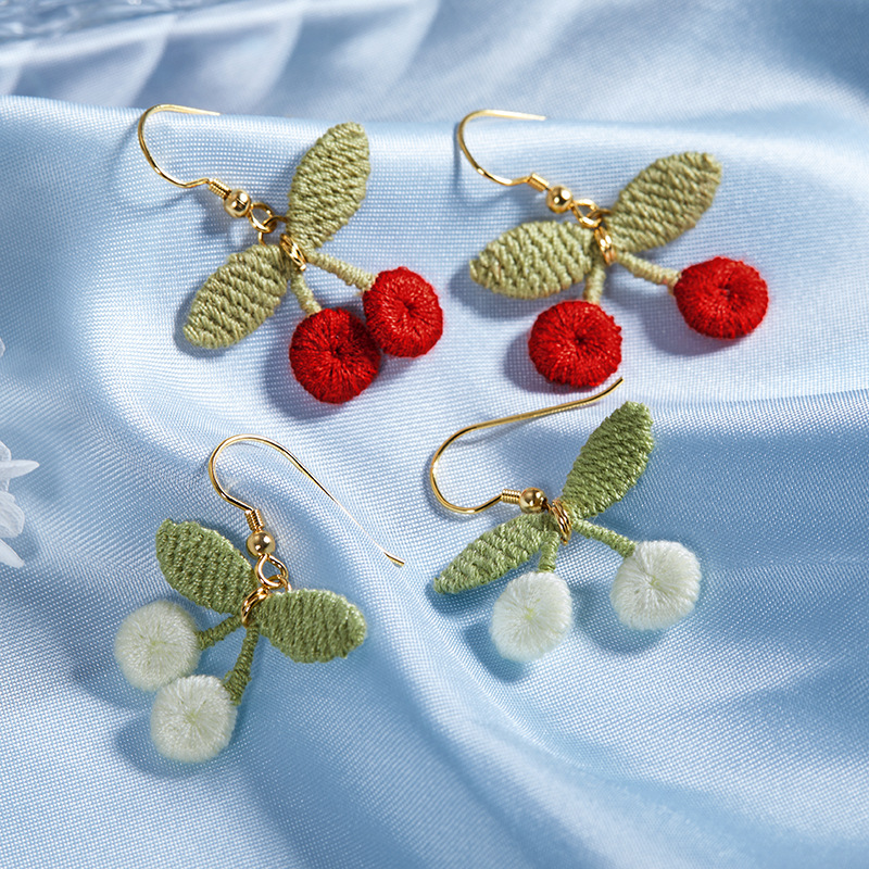韓国の春の新作のニットの花束のさくらんぼのイヤリングの甘い少女感の耳のフックの手作りの小さくてかわいい耳のクリップの女性