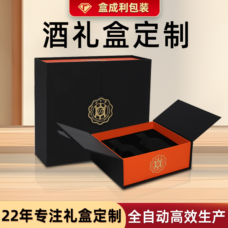 ワインボックス、少量カスタマイズされた酒包装箱、両開きフリップカバー、赤ワインギフトボックス、硬質段ボール製空箱