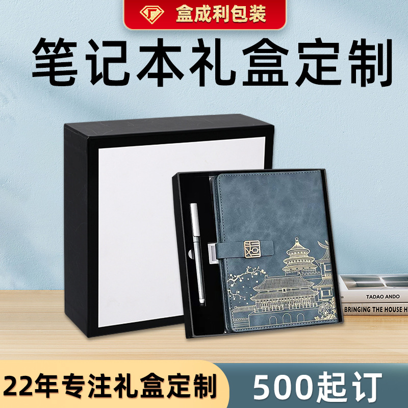 ノートギフトボックス空箱黒色ビジネス包装箱uディスクセット天地蓋硬紙箱小ロットカスタマイズ
