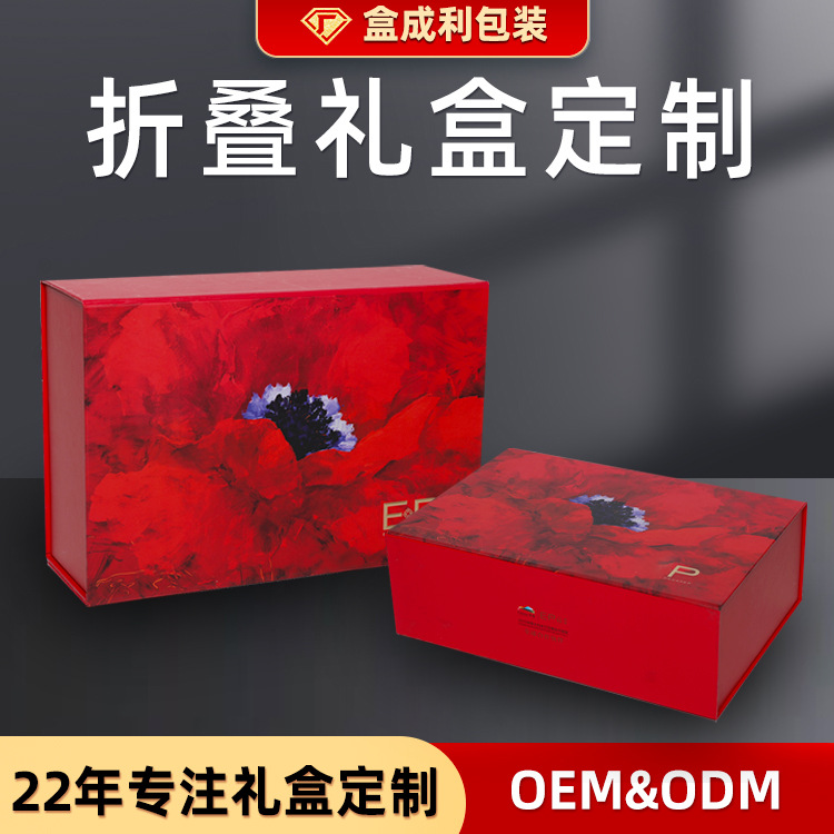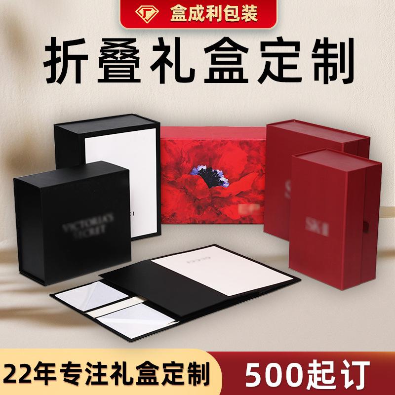 折り畳みギフトボックスカスタムカラー紙箱対外貿易磁気吸引蓋箱創造性一枚式蓋空箱注文