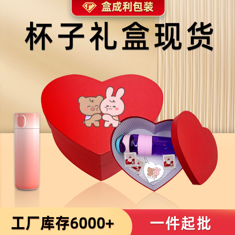 赤いハートの箱の卸売りins風のコップのギフトボックスの空の箱の漫画の図案は手を伴ってギフトボックスの現物に帰ります。