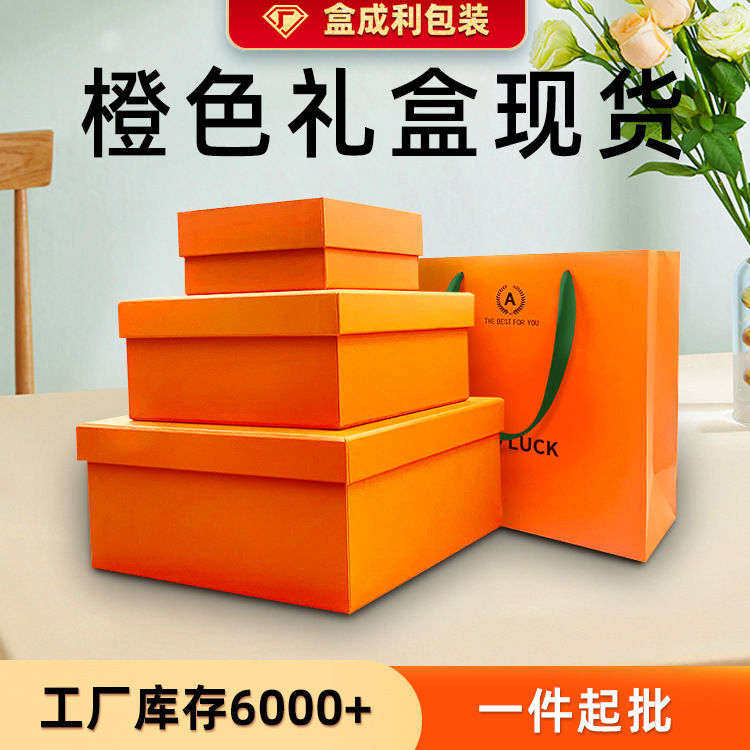 お土産ギフトボックス現物シンプルオレンジ色汎用ギフトボックス化粧品口紅包装ボックスメーカー直送