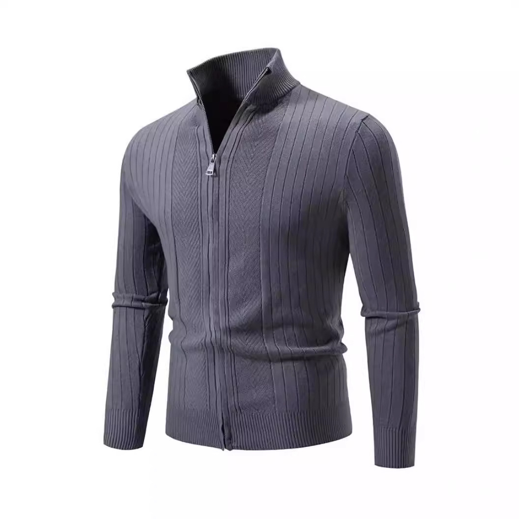 2024秋冬越境男性ファスナー立襟カーディガンセータージャカードファッション男性修身韓国版ニットコート