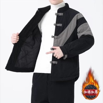 冬の男性のコートの中国風は綿を挟んで厚いコーデュロイの立襟のバックルの綿の服のゆったりした大きいサイズの色の綿の服にぶつかります。