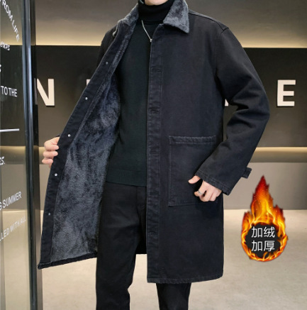 冬の綿の服の男性は羊の小毛のカジュアルなデニムのジャケットを厚くします。