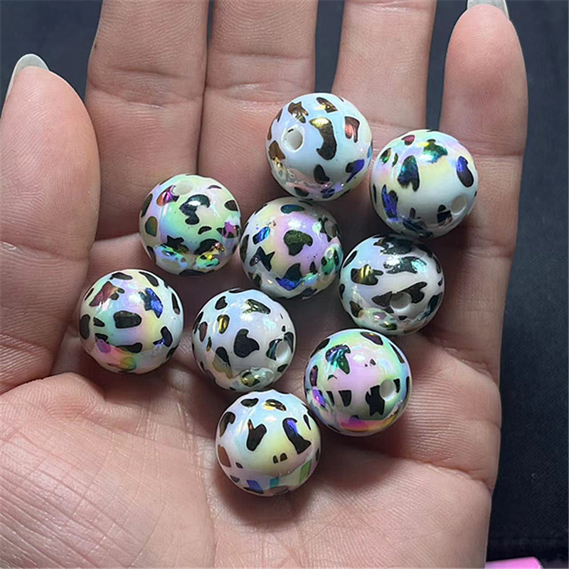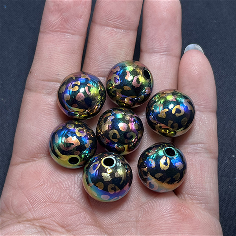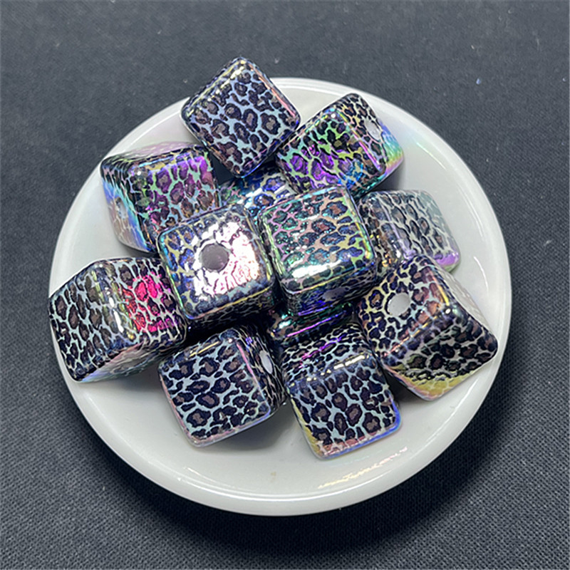 Uvカラーメッキ15mmブロック小香風豹紋ミルクビーズdiアクセサリー携帯チェーンビーズペンなどの部品