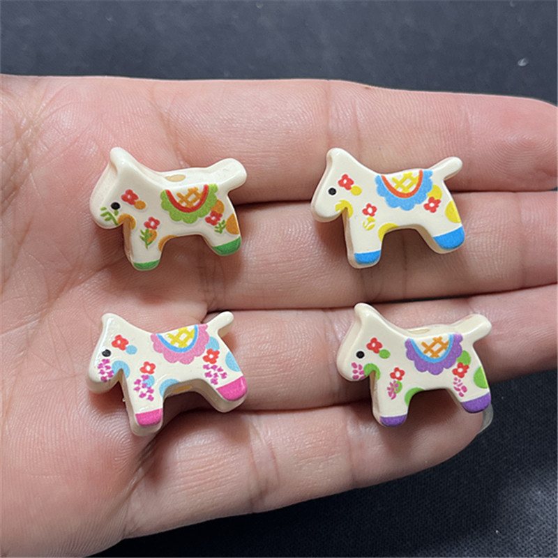アクリル国潮プリントシマウマ砕花ポニー縦穴ビーズdiyアクセサリー携帯チェーンビーズペンなどの手作り