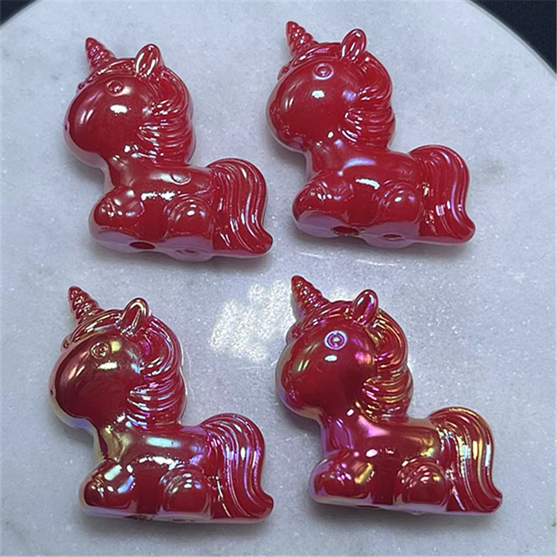 アクリルuvメッキ実色夜光縦穴ユニコーンビーズdiyアクセサリー