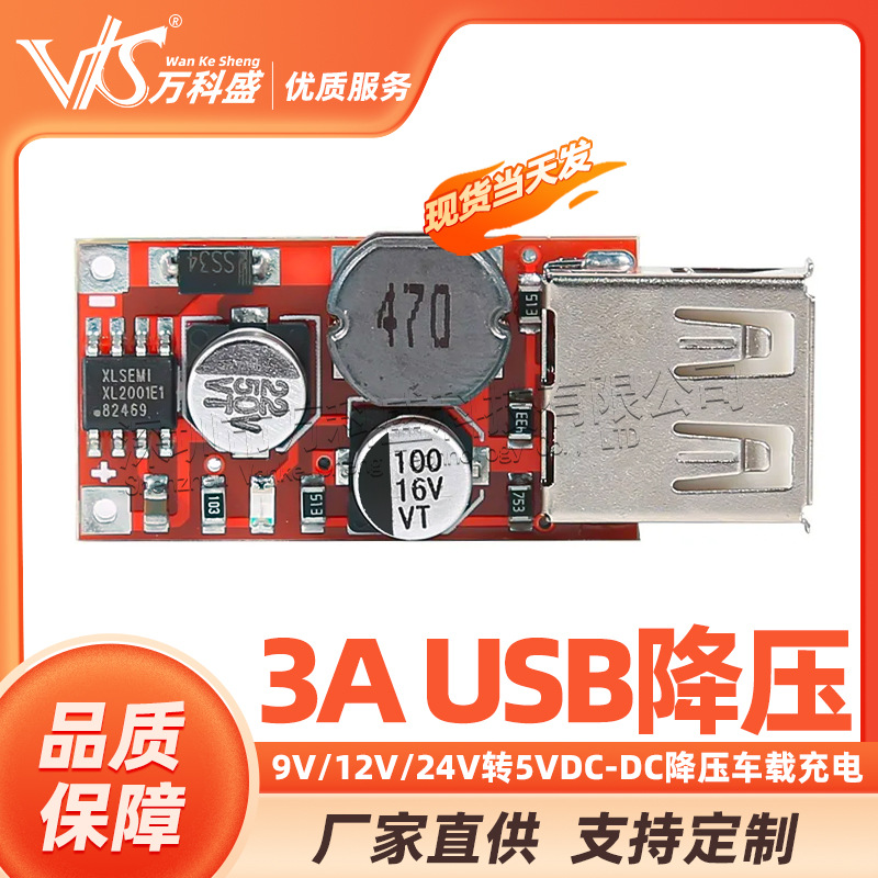 9v/12v/24v回転5v dc-dc降圧車載充電車充電3a出力usb降圧安定化モジュール赤