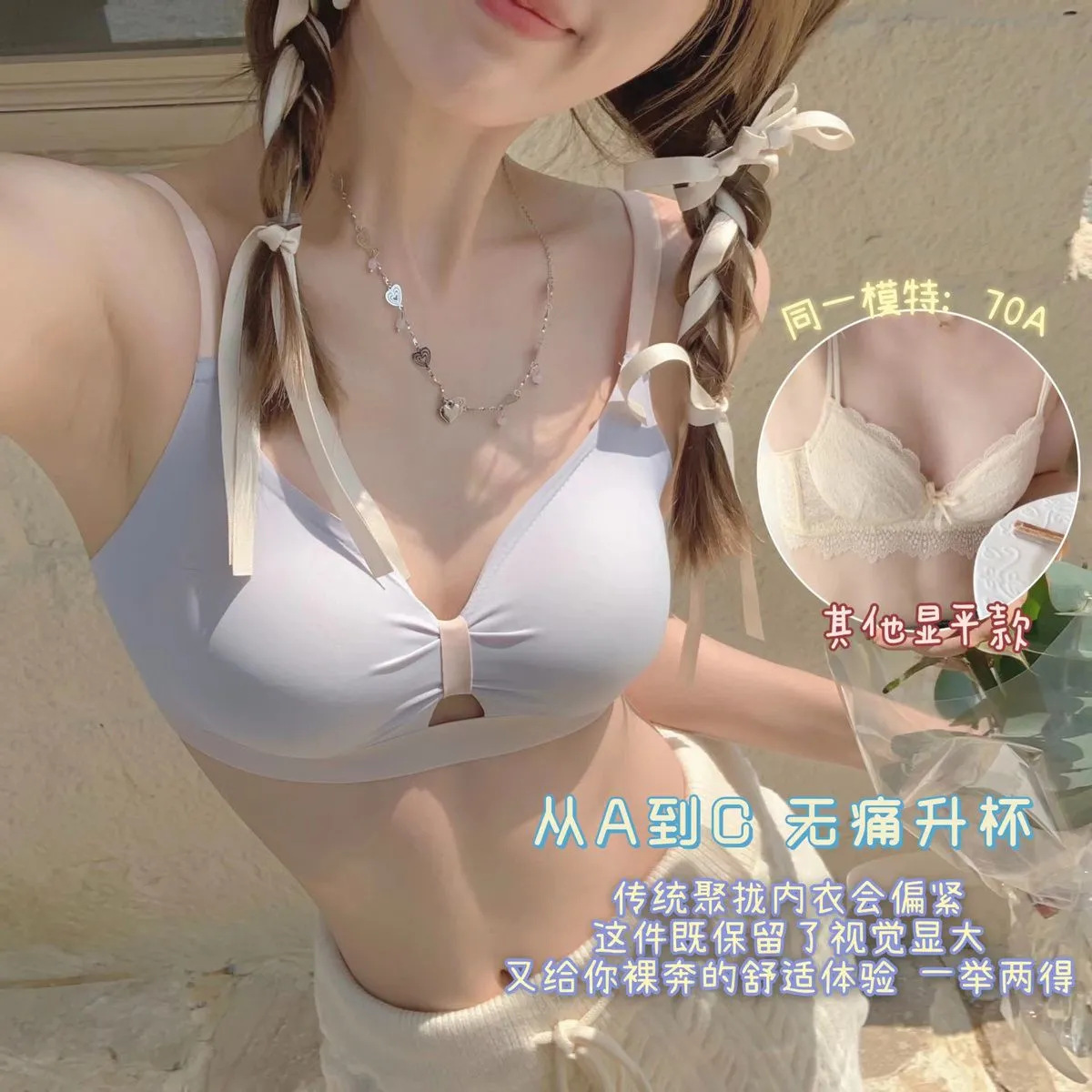 胸が小さい女性向けの快適なレースのシームレスなレースゼリーストリップ下着、美背中、細いショルダーストラップ、雲のようなブラジャー、夏用の薄いスタイル