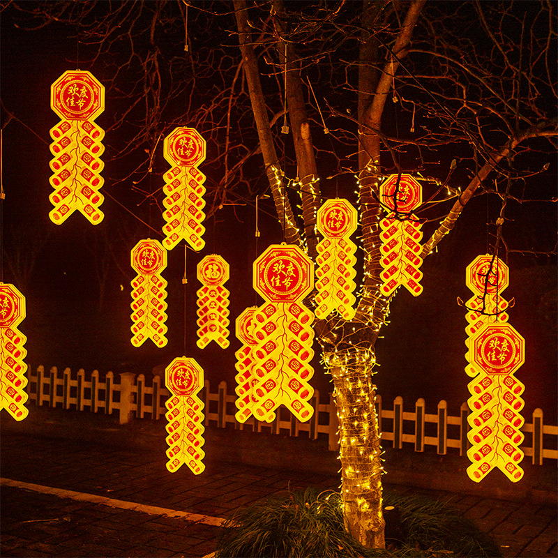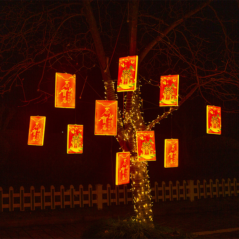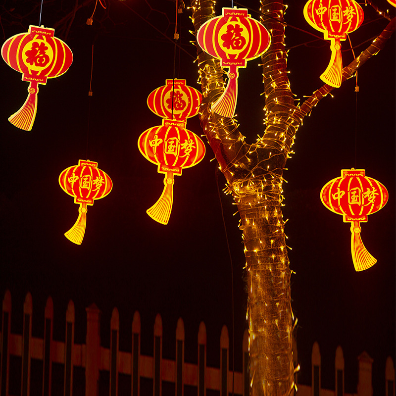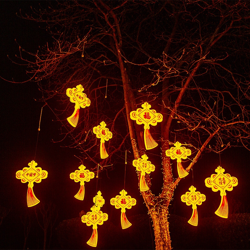 Led発光新年福字国潮雰囲気装飾灯中国結び提灯花園庭園装飾灯爆竹灯