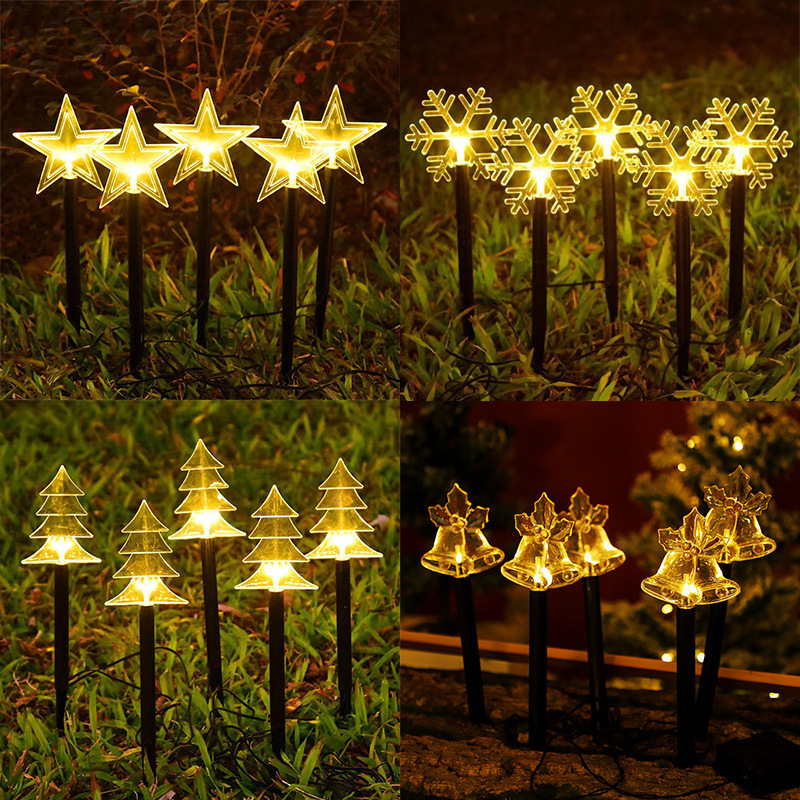 LED太陽エネルギー五角星雪クリスマスツリー鈴地挿灯屋外防水芝生灯庭園装飾雰囲気