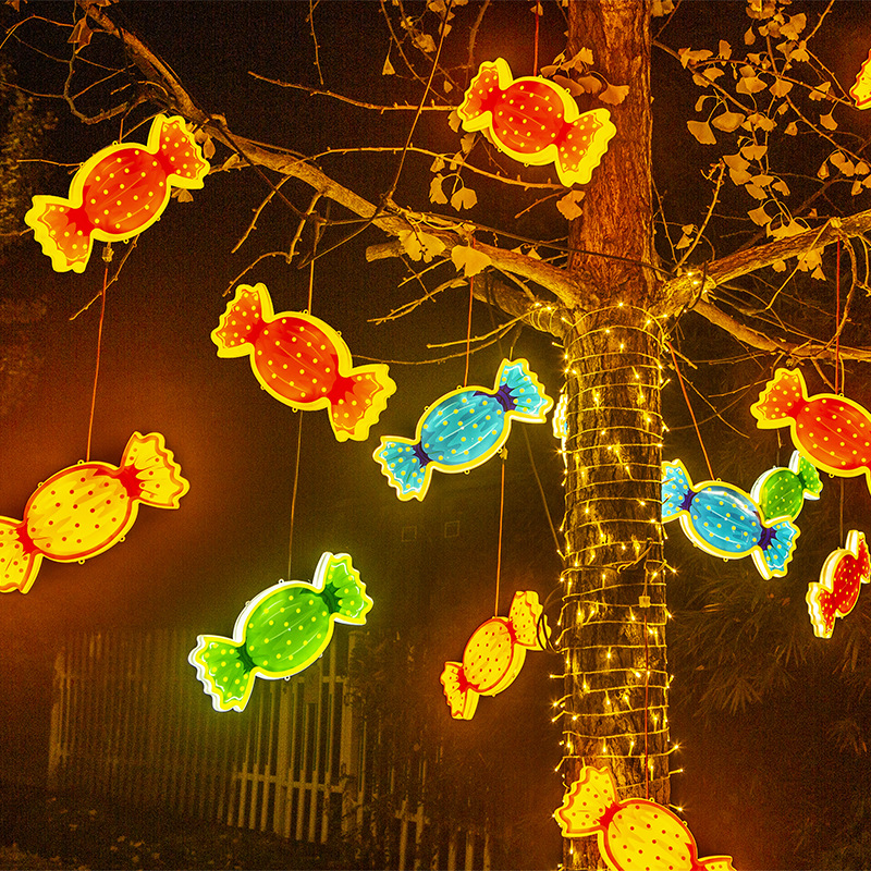 LED屋外防水樹木景観点灯工事ネット赤装飾灯七彩琥珀瑠璃許瓶灯