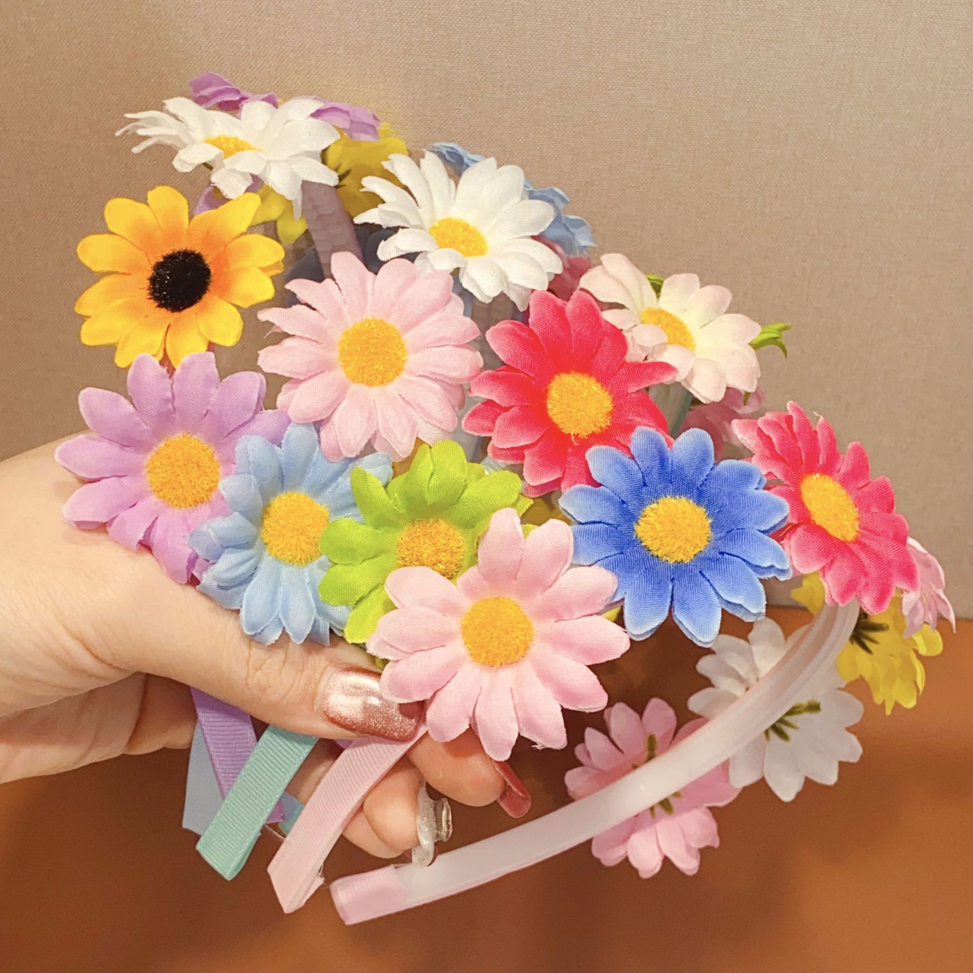 小清新アンドロメダのカチューシャがかわいい小菊の小さな太陽の花の頭の小菊の子供のカチューシャが髪飾りを披露します。
