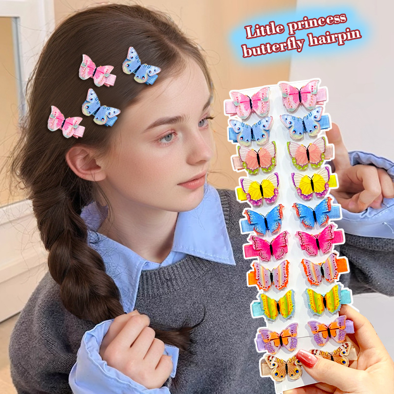 子供用ヘアピン、女の子用ヘアピン、韓国風かわいい蝶の前髪サイドクリップ組み合わせ10個セット、小さなヘアクリップ