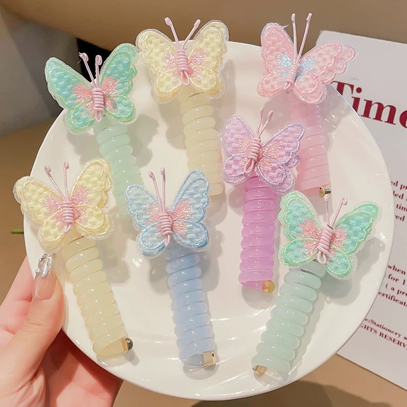 子供の漫画の巻き巻きの電話線の髪輪の女性の泡のお下げは蝶結びの皮の筋のネットの赤い髪のひもの虹のひもを編みます。