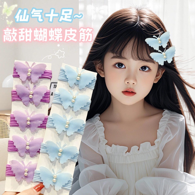 スーパーフェアリーリボン子供用ヘアアクセサリースイートガールパールリボンヘアピン生地メッシュストライプかわいいヘアロープ