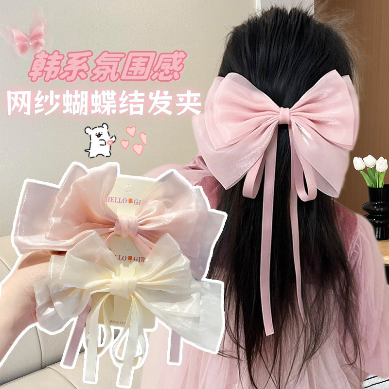韓国子供用二層糸特大リボンヘアピンスプリングクリップ女の子後頭部プリンセススイートヘアアクセサリー