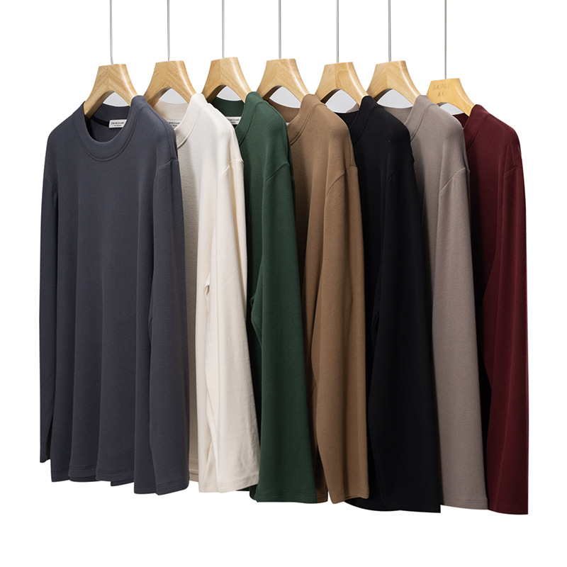 【両面徳絨毛長袖】大きいサイズのメンズの純色の丸い襟の恒温保温冬の厚い底のシャツの男