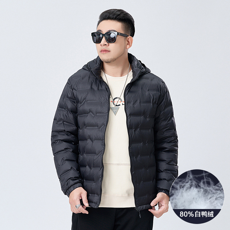 【帽子付きの薄いダウンジャケット】大きいサイズのメンズ冬の純色グラフェン80白鴨絨毯防走絨毯コート男