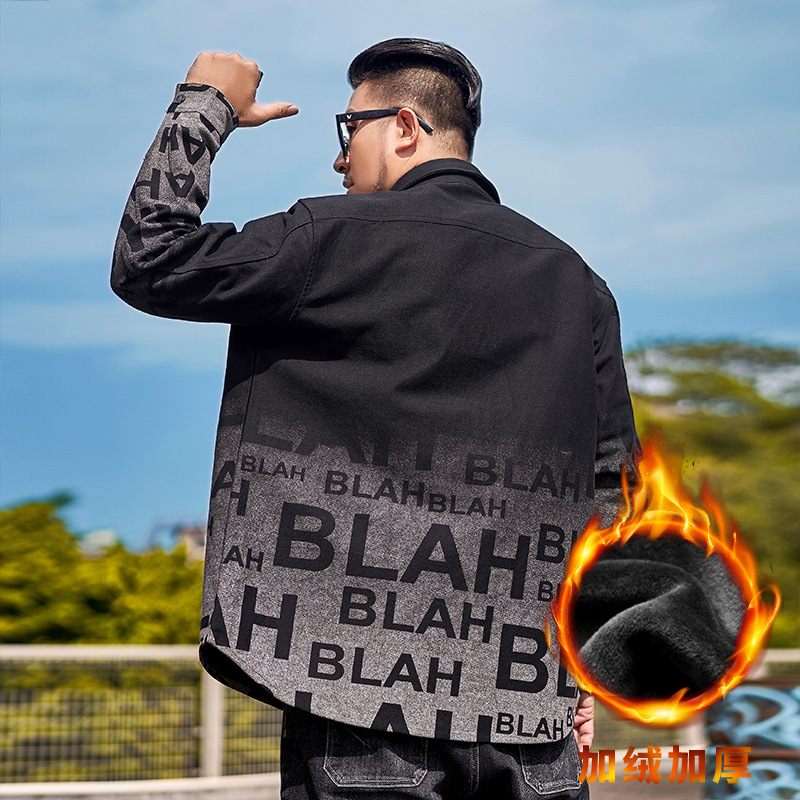 厚手の裏起毛加工を施したウォッシュドジャケット、大きいサイズのメンズ冬服、トレンドのシングルブレスト、ラペル付きシャツ、ゆったりとしたデニムジャケット(メンズ)