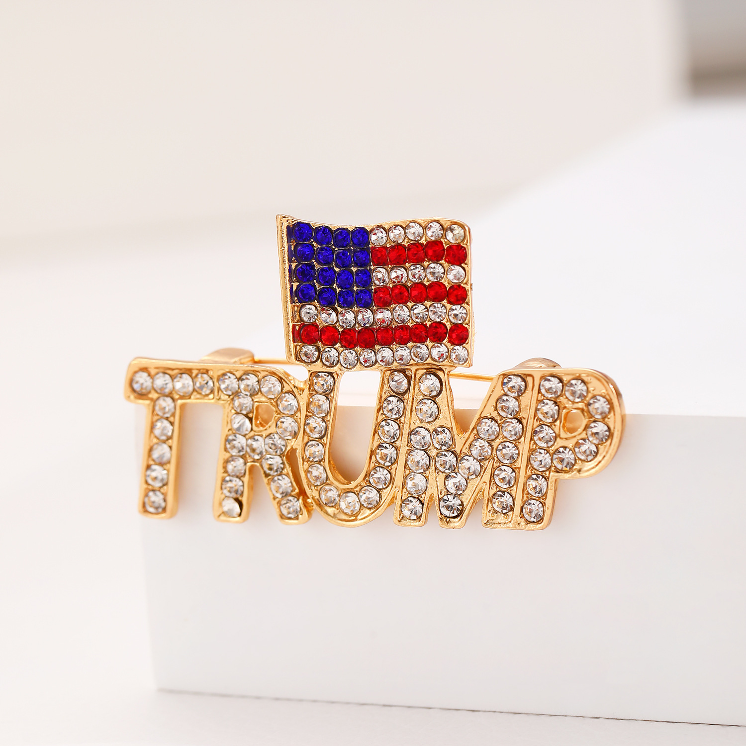 欧美跨境热销亚马逊创意美国旗帜胸针高档别针TRUMP标志滴油胸花