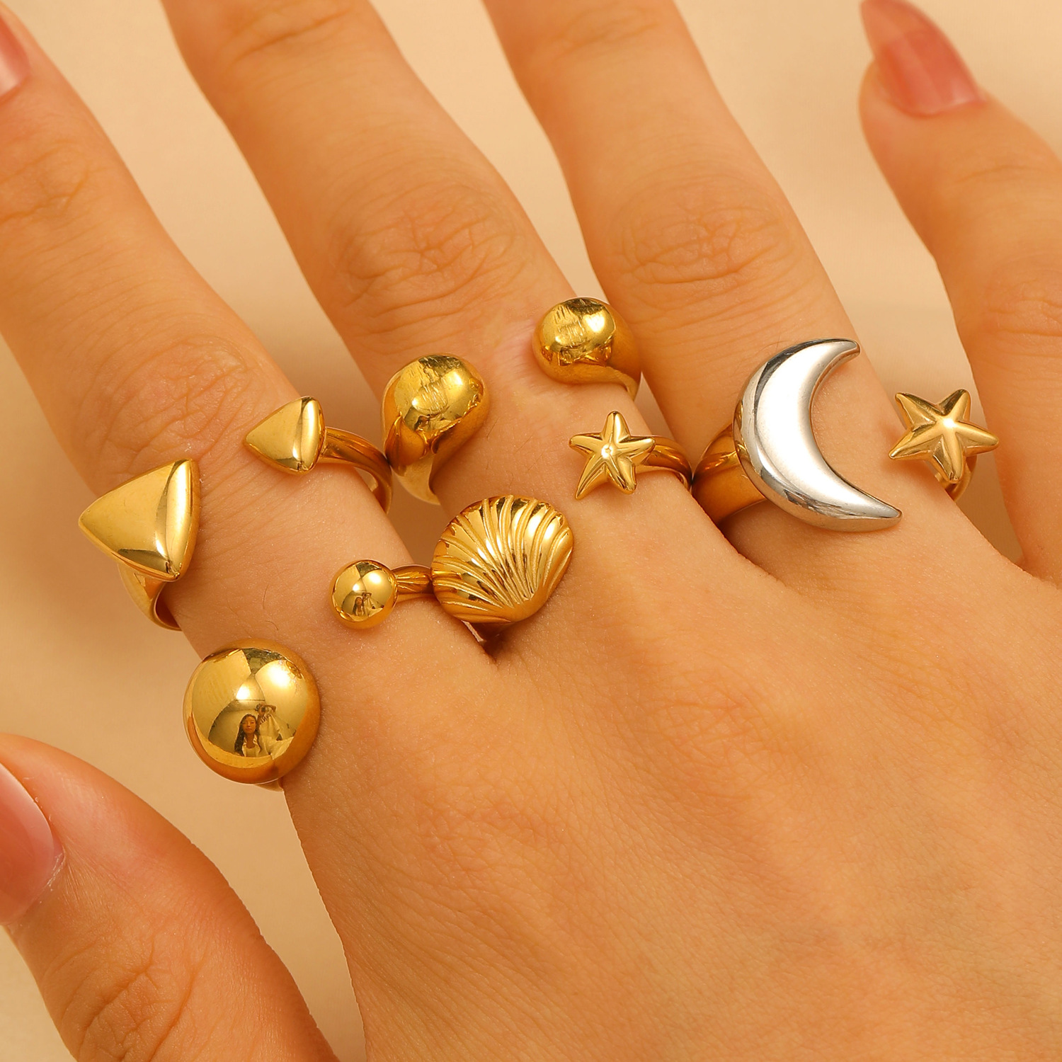 ins フレンチニッチ不規則なチタン鋼ウォータードロップリング女性のためのヨーロッパとアメリカの人気のパーソナライズされたメッキ鋳造 18K オープンリング