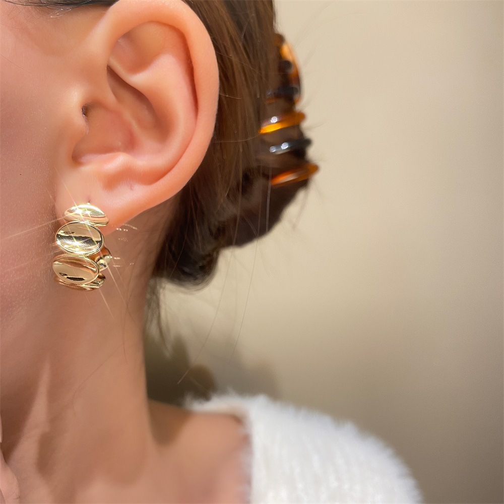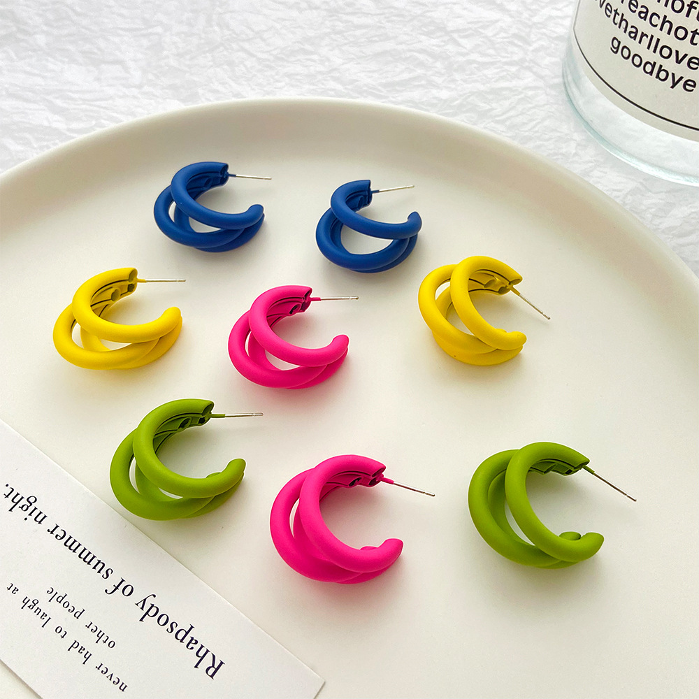 日本と韓国のインスタイルの女性用の小さな新鮮なキャンディーカラーのイヤリング、シンプルなC型イヤリング、レトロなスタイルの多層サークルイヤリング