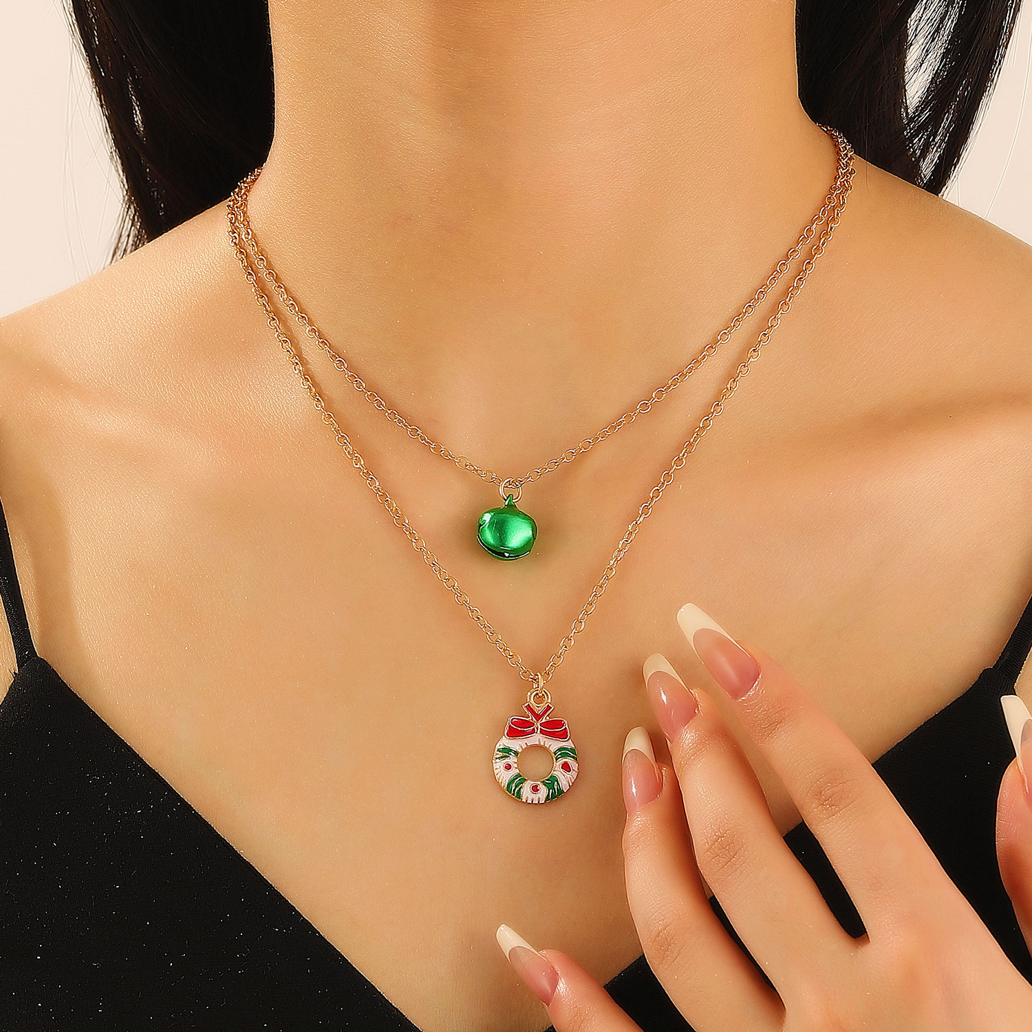 ヨーロッパとアメリカのクロスボーダークリスマス二層ネックレスジュエリークリスマスヘラジカ手袋サンタクロースクリスマスツリーネックレス