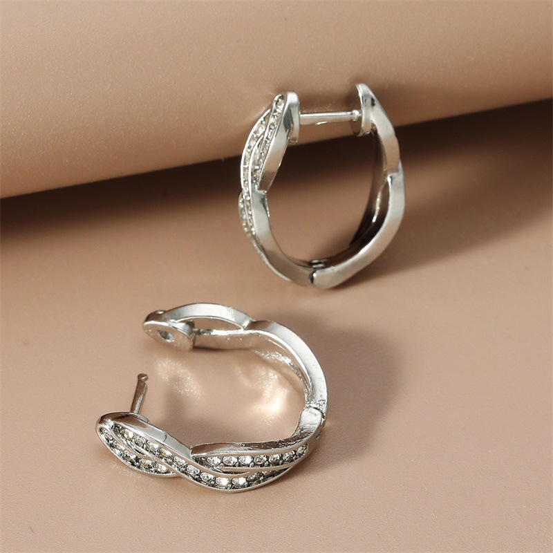 新しいヨーロッパとアメリカンスタイルのC型サークルイヤリング、マイクロセットジルコンサークルイヤリング、女性用のファッショナブルな幾何学的なラウンドイヤリング