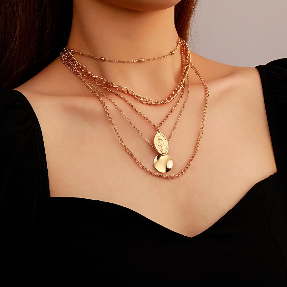 ヨーロッパとアメリカンスタイルのレトロな誇張された多層ネックレス多層鎖骨チェーン合金ネックジュエリー