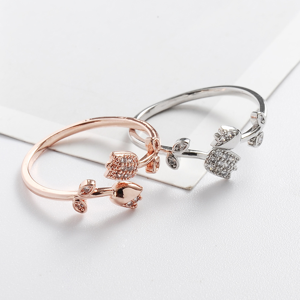 フレンチレトロローズオープンリング韓国風個性ファッションネットセレブシンプルレトロリングチューリップリング