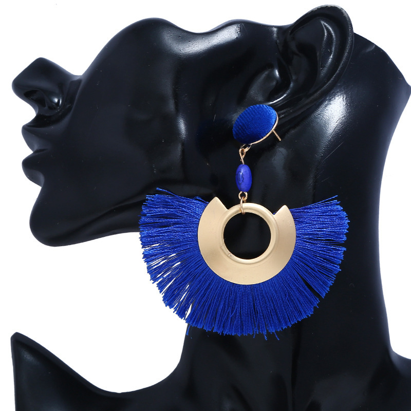 レトロな誇張された扇形のイヤリング、ファッショナブルでパーソナライズされたタッセルのロングイヤリング、女性向けのトレンディなアクセサリー、絶妙で軽い高級感