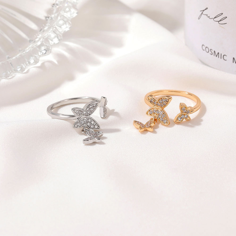 甜美微镶锆石开口戒指 唯美蝴蝶女士手饰食指潮流配饰精致