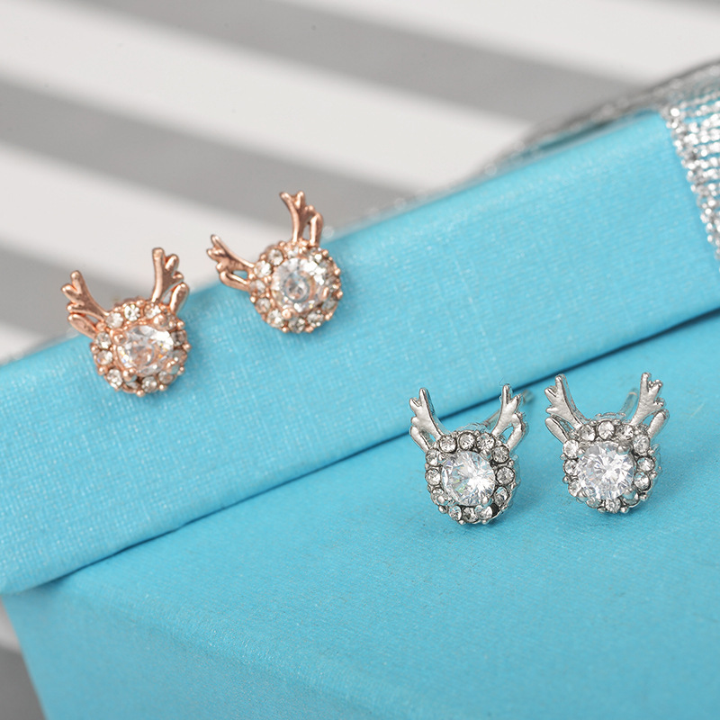 韓国版の小さな新鮮でクリエイティブな小さなヘラジカのイヤリング、シンプルな気質、かわいいクリスマスの角、女の子の文学的なアクセサリー