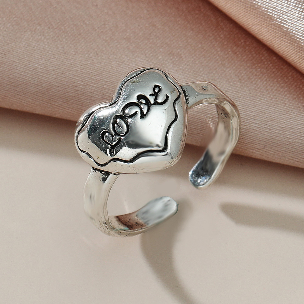 レトロな古いハート型の開口部調節可能なリングシンプルな愛のリングトレンディなリングアクセサリー