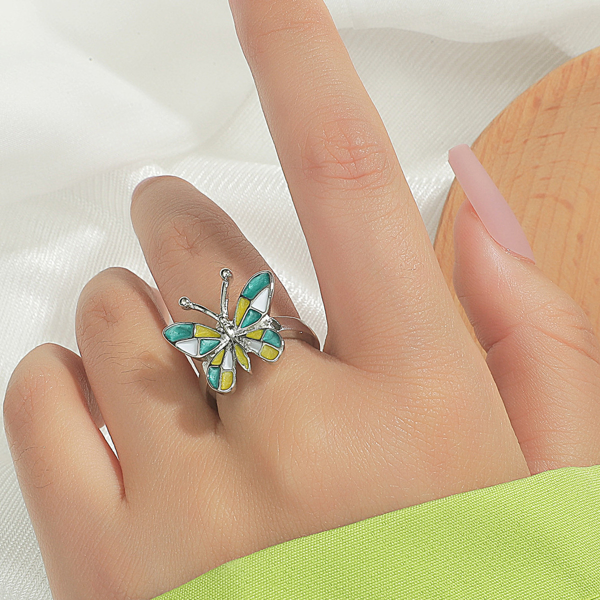 ファッションカラフルな蝶オープンリングゴージャスなヴィンテージ合金調節可能な指輪女性アクセサリー